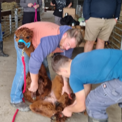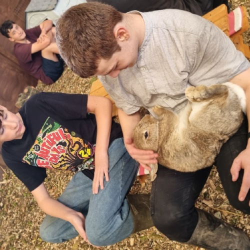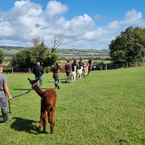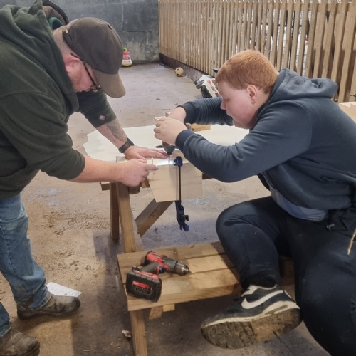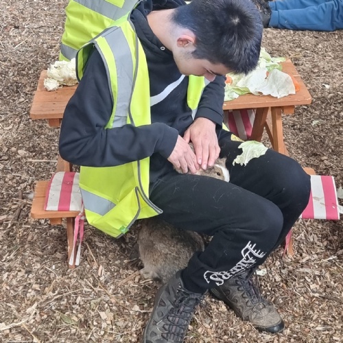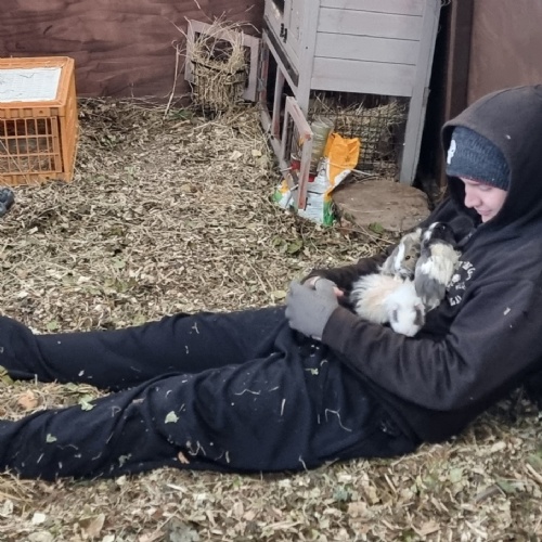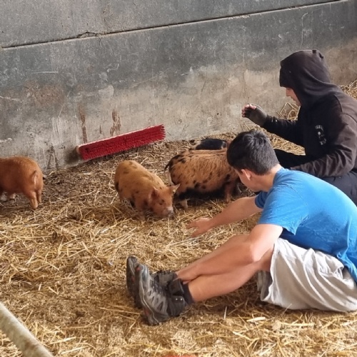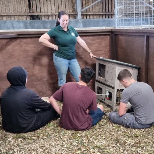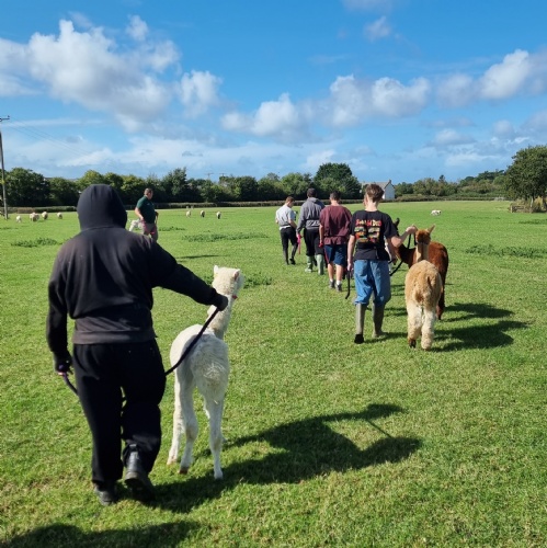 Animals on the farm included alpacas, sheep, miniature goats and ponies, a calf, lots of chickens and ducks, pigs, rabbits and guinea pigs. The group soon got into a routine of mucking out the pens, checking the animals over, laying fresh bedding and providing food and water. They also collected eggs and pumpkins, helped with animal husbandry (such as hoof trimming goats and alpacas), field fencing, walking the alpacas and making bird boxes.